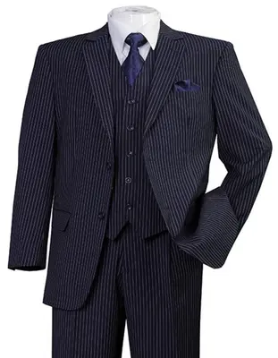 Stylish: 2 button closure, notch lapel, and bold pinstripe give this suit a timeless look.. Comfortable: Modern fit ensures maximum comfort and ease of movement.. Versatile: Perfect for any gangster, 1920s, or flapper party, or swing dance event.. This 2 button vested suit is the perfect combination of style and comfort. With a classic 2 button closure, notch lapel, bold pinstripe, and side vents, this suit is sure to make a statement at any occasion. The modern fit ensures maximum comfort and ease of movement, making it the perfect choice for any gangster, 1920s, or flapper party, or swing dance event.