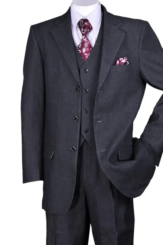 "Black Denim Jeans 3-Button Vested Suit for Men"