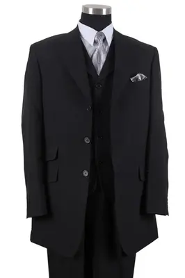 "Black Men's Fashion Suit - 3 Button Vested Wide Peak Lapel"