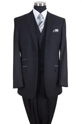 Trendy Peak Lapel: Make a statement with this stylish peak lapel suit.. Matching Vest: Get the complete look with the included matching vest.. Ticket Pocket: This suit includes a ticket pocket for added convenience.. Trim Around the Pockets: Enjoy a polished look with trim around the pockets.. Contrast Collar Color: Stand out with a contrast collar color.. Flat Front Pants: Look sharp with the included flat front pants.. This 2 button modern fit suit is the perfect combination of style, comfort, and versatility. Featuring a trendy peak lapel, matching vest, ticket pocket, trim around the pockets, contrast collar color, and flat front pants, this suit is the ideal choice for any special occasion. Look sharp and feel comfortable in this stylish suit.