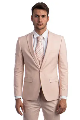 Jacket:. Solid construction and ultra slim fit for a modern, polished look. One button front closure with peak lapel and interior French facing. Two besom front pockets with flap closure and three interior pockets for ample storage. Underarm sweat guards for added comfort. Vest:. U-shape design and four buttons for a classic, tailored look. Pants:. Flat front and two back besom pockets with button closure for a sleek silhouette. Two front angled slip pockets for convenient storage