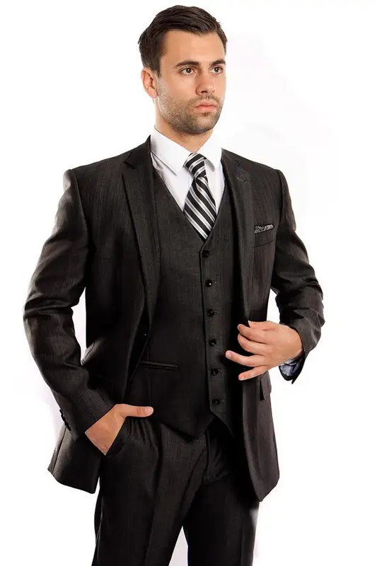 "Black Sharkskin Business Suit - Men's Two Button Vested Style"