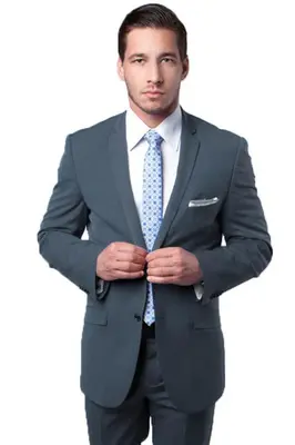Jacket:. Slim Fit: Contoured to the body for a sharp, modern look. Two Button Front Closure: Easy to put on and take off. Slim Notch Lapel: Adds a classic, timeless touch. Side Vents: Allows for comfortable movement. Interior French Facing: Adds a luxurious feel. Two besom front pockets with flap closure: For convenient storage. Three interior pockets: Ample storage for all your needs. Underarm sweat guards: Keeps you dry and comfortable. Pants:. Flat Front