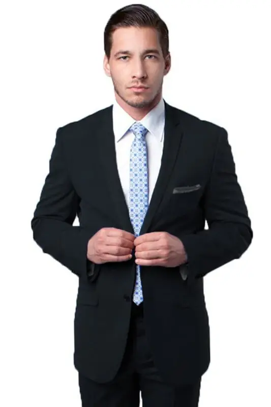 Jacket:. Slim Fit: Contoured to the body for a sharp, modern look. Two Button Front Closure: Easy to put on and take off. Slim Notch Lapel: Adds a classic, timeless touch. Side Vents: Allows for comfortable movement. Interior French Facing: Adds a luxurious feel. Two besom front pockets with flap closure: For convenient storage. Three interior pockets: Ample storage for all your needs. Underarm sweat guards: Keeps you dry and comfortable. Pants:. Flat Front