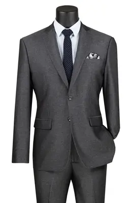 Stylish Notch Lapel: Make a statement with this classic notch lapel, designed to add a touch of sophistication to any look.. Textured Stretch Fabric: Enjoy superior comfort and flexibility with this textured stretch fabric, perfect for any occasion.. Slim Fit: Show off your shape with this slim fit, tailored to give you a sleek, modern silhouette.. Flat Front Pants: Get the perfect fit with these flat front pants, designed to flatter your figure.. This 2 button suit is the perfect combination of style, comfort, and versatility. Crafted with a stylish notch lapel, textured stretch fabric, and slim fit, this suit is designed to make a statement. The flat front pants provide a tailored fit, perfect for any occasion. Whether you're attending a formal event or just looking to dress up your everyday wardrobe, this suit is sure to make an impression.