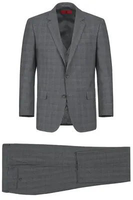 Product Features:. Jacket:. Single Breasted Two Button Jacket. 2 Front pockets, chest pocket and internal pockets. Notch Lapel. 4 Button Cuff. Side Vents. Solid Color. Fully lined. Pants:. Flat Fronted Trousers. Zip Fly with Button Closures. Unhemmed. Belt Loops. Pockets at front; welt pockets at back. Fabric & Care: