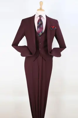 "Burgundy Slim Fit Men's Suit - One Button, Vested Peak Lapel"