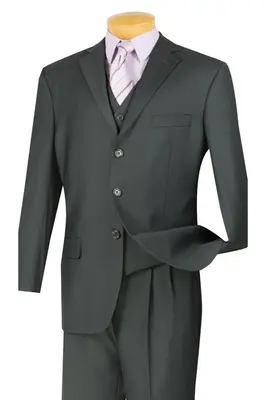 "Classic Fit Men's 3-Button Vested Suit in Charcoal Grey"