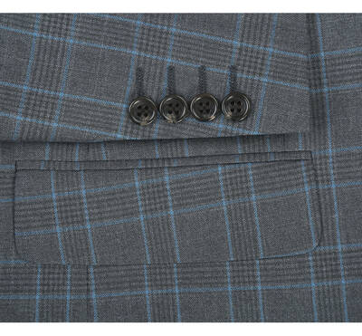 "Classic Fit Men's Two Button Suit - Grey & Blue Windowpane Plaid"