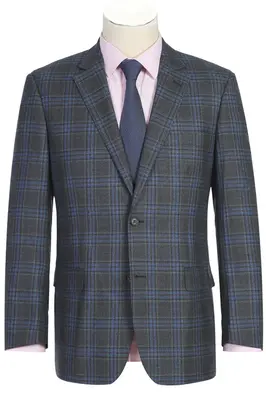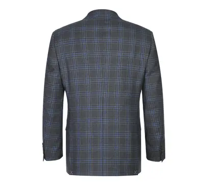 "Classic Fit Men's Wool Suit - Two Button Vested in Brown & Blue Windowpane Plaid"