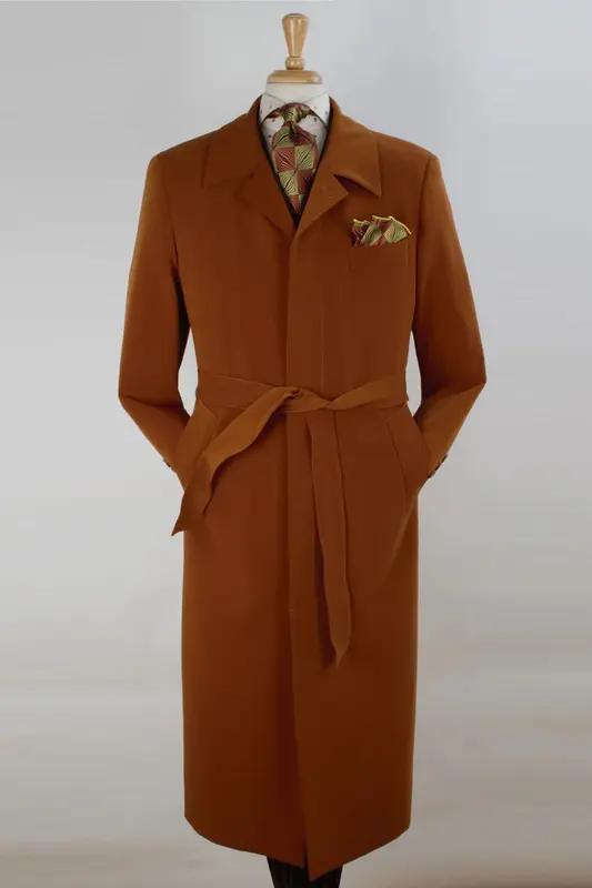 "Copper Men's Wool Overcoat - Full Length with Belt"