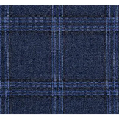 "Dark Blue Slim Fit Men's Suit - Two Button, Wide Windowpane Plaid"