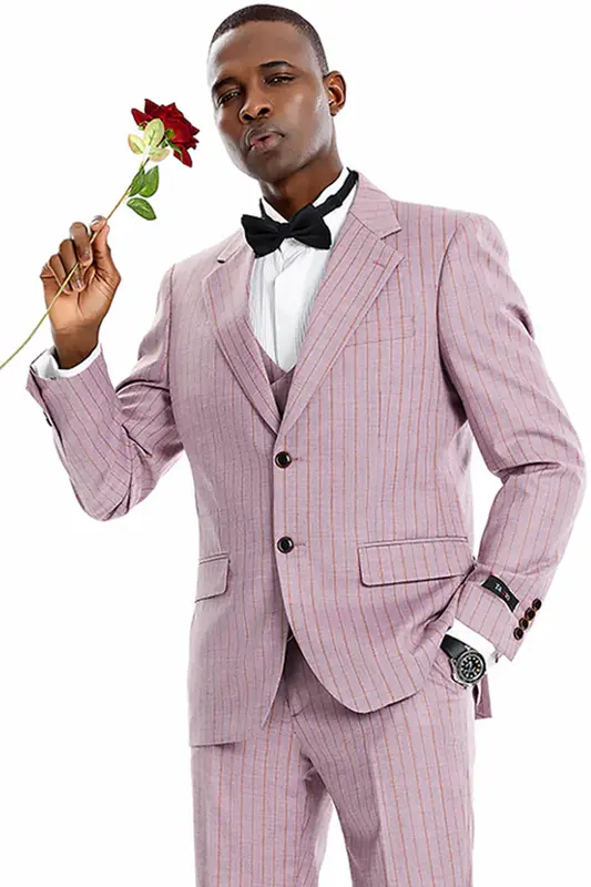 "Dusty Rose Pink Vintage Pinstripe Suit - Men's Two Button Vested"