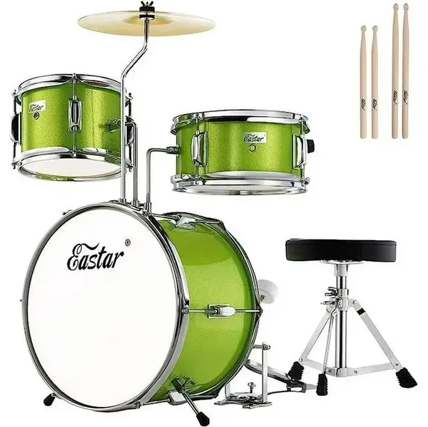 "Eastar Drum Set for Kids, 3 Drums 1 Cymbal Percussion Kit, Beginners Children 14"" 3-Piece Drum Bundle, with Adjustable Throne, Drumsticks"