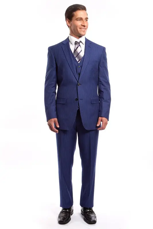 "French Blue Pinstripe Men's Business Suit - Two Button Vested Style"