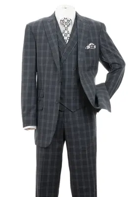 "Grey Windowpane Plaid Men's Double Breasted 2 Button Vest Suit"