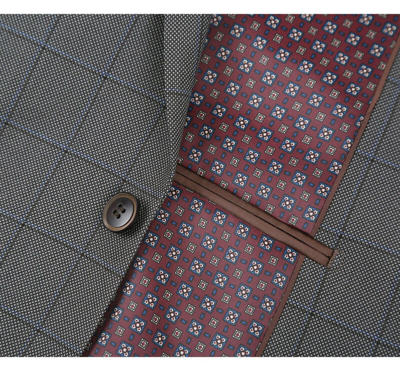 "Grey Windowpane Plaid Men's Two Button Classic Fit Suit"