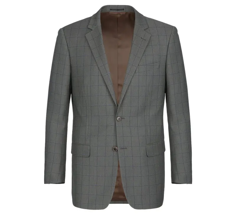 "Grey Windowpane Plaid Men's Two Button Classic Fit Suit"