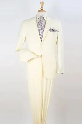 "Ivory Modern Fit Two Button Poplin Men's Suit - Contemporary Style"