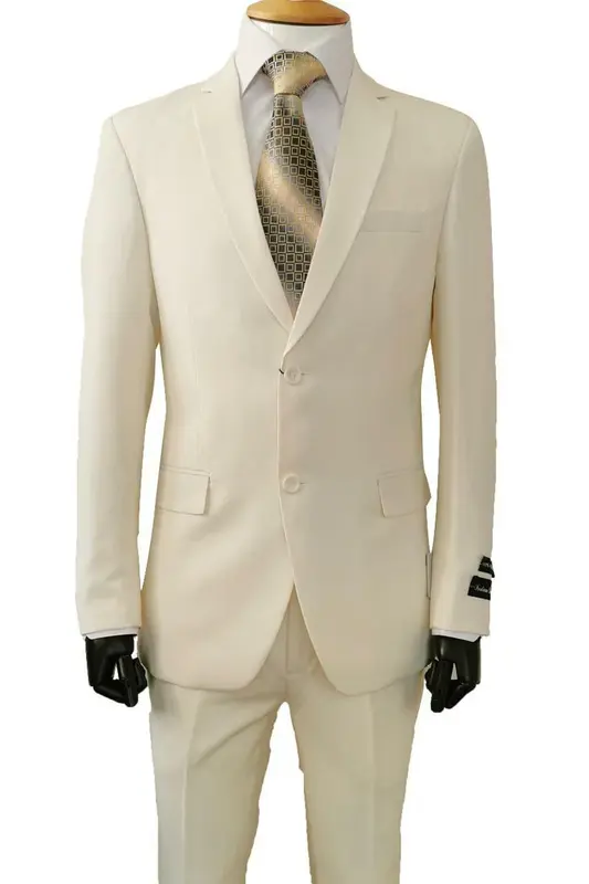 "Ivory Slim Fit Poplin Suit for Men - 2 Button Basic Style"