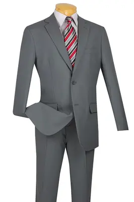 Modern Fit - This suit features a modern fit that is both stylish and comfortable.. Notch Lapel - The notch lapel adds a touch of sophistication to this suit.. Flap Pockets - The flap pockets provide plenty of storage and a classic look.. Side Vents - The side vents allow for maximum movement and breathability.. Light Weight Poplin Polyester - The light weight poplin polyester material is perfect for any season.. This modern fit 2 button suit is the perfect combination of style, comfort, and versatility. The notch lapel, flap pockets, and side vents give it a sophisticated and classic look, while the light weight poplin polyester material provides maximum breathability and movement. Whether you are looking for a suit for the office or a night out, this suit is the perfect choice.