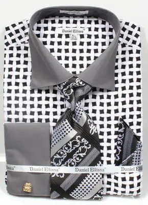 Style: Spread contrast collar, contrast french cuffs, and lattice check pattern design create a timeless, sophisticated look. Comfort: 100% Cotton construction ensures all day comfort and breathability. Versatility: Comes with shirt, tie, hankerchief, and cufflinks for a complete, put-together look. This dress shirt combo is the perfect blend of style and comfort. The spread contrast collar, contrast french cuffs, and lattice check pattern design create a timeless, sophisticated look. Crafted from 100% Cotton, this combo ensures all day comfort and breathability. Complete with shirt, tie, hankerchief, and cufflinks, this dress shirt combo is perfect for any occasion.