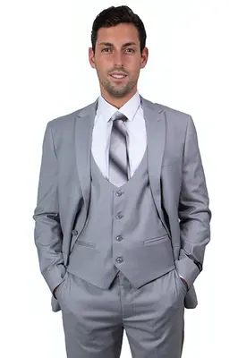 Jacket:. Solid construction and ultra slim fit for a modern, polished look. One button front closure with peak lapel and interior French facing. Two besom front pockets with flap closure and three interior pockets for ample storage. Underarm sweat guards for added comfort. Vest:. U-shape design and four buttons for a classic, tailored look. Pants:. Flat front and two back besom pockets with button closure for a sleek silhouette. Two front angled slip pockets for convenient storage