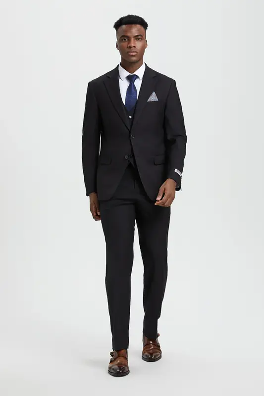 "Mens Stacy Adams Suit - Stacy Adams Suit Men's Designer Two Button Vested Basic Suit - Black"