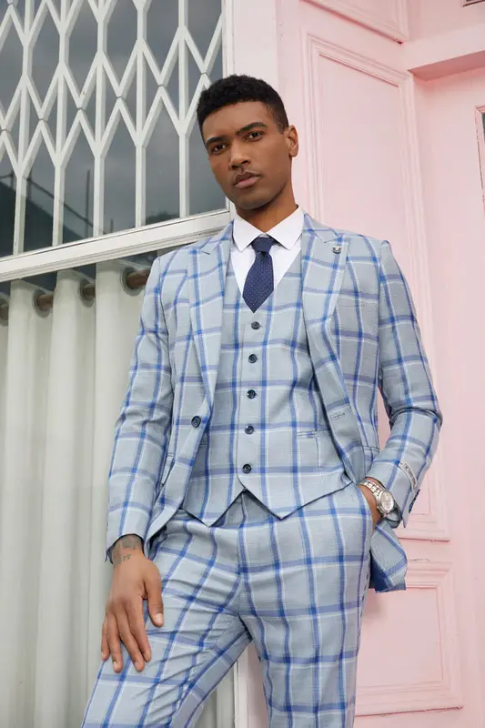 Jacket: Plaid single-breasted one-button closure with peak lapel and side flap pockets. Pants: Hybrid fit plaid flat front. Vest: Four-button plaid with side pockets. This men's plaid suit is the perfect combination of style, comfort, and versatility. The jacket features a single-breasted one-button closure with peak lapel and side flap pockets for a classic, timeless look. The hybrid fit plaid flat front pants provide a comfortable fit while the four-button plaid vest with side pockets adds a touch of sophistication. This suit is perfect for any occasion, whether it's a business meeting, a special event, or a night out.