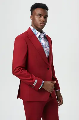 "Mens Stacy Adams Suit - Stacy Adams Suit Men's Designer Suit - Cherry Red, One Button Peak Lapel with Vest"