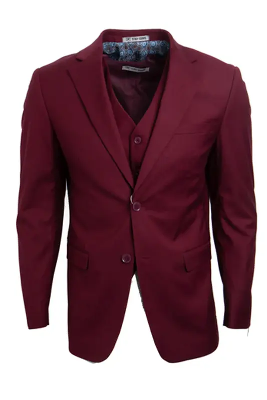 "Mens Stacy Adams Suit - Stacy Adams Suit Men's Two Button Vested Basic Suit in Burgundy"