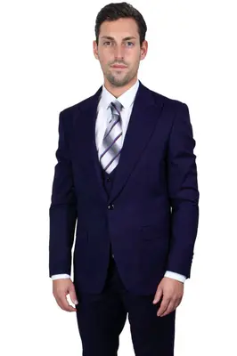 "Mens Stacy Adams Suit -Stacy Adams Men's Navy Blue Suit with Vested One Button Peak Lapel"