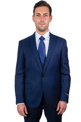 Jacket:. Solid construction and ultra slim fit for a modern, polished look. One button front closure with peak lapel and interior French facing. Two besom front pockets with flap closure and three interior pockets for ample storage. Underarm sweat guards for added comfort. Vest:. U-shape design and four buttons for a classic, tailored look. Pants:. Flat front and two back besom pockets with button closure for a sleek silhouette. Two front angled slip pockets for convenient storage