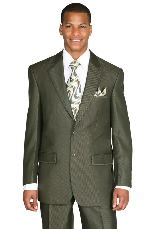 "Olive Green Sharkskin Suit for Men - 2 Button Diagonal Design"