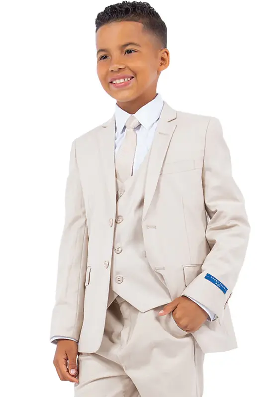 "Perry Ellis Boy's Vested Wedding Suit - Tan Color"