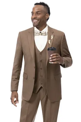 • Modern fit with notch lapel to ensure a sharp, professional look. • Flap pockets and side vents to add a stylish touch. • Includes matching 5 button vest and flat front pants for versatility. • Crafted from high-quality materials for durability and comfort. This 2 button suit is designed to ensure a sharp, professional look with modern fit and notch lapel. The suit is further enhanced with stylish touches such as flap pockets and side vents. It also includes a matching 5 button vest and flat front pants, offering versatility and a complete look. Crafted from high-quality materials, this suit is designed to provide comfort and durability.