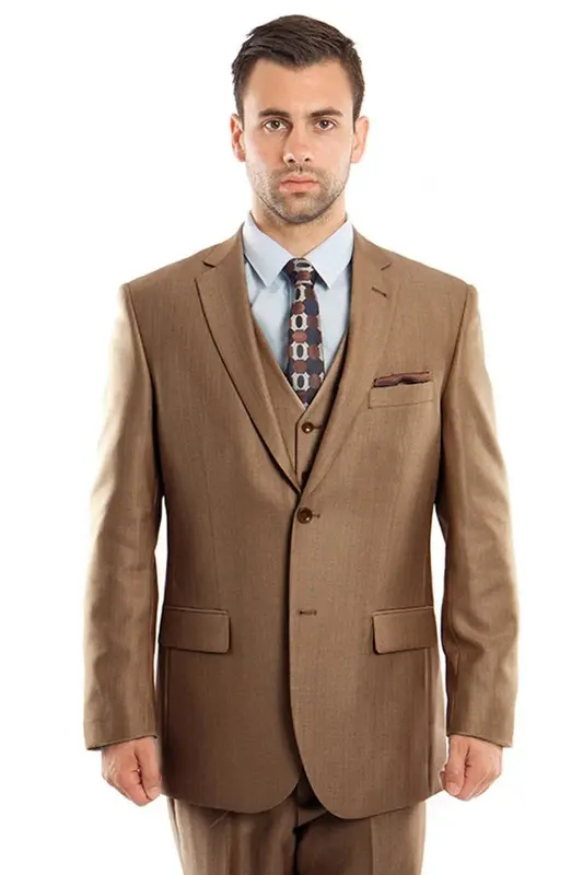 "Sharkskin Business Suit for Men - Two Button Vested in Dark Camel Toast"
