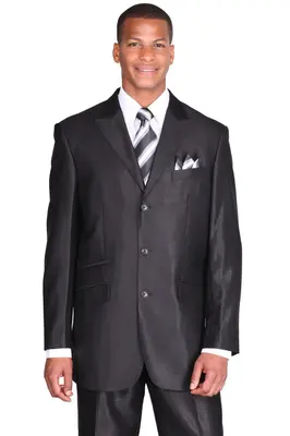 Wide Peak Lapel: This suit features a wide peak lapel for a timeless, sophisticated look.. Side Vents: The side vents provide added breathability and comfort.. Besom Ticket Pocket: This pocket adds a unique touch of style and class.. Shiny Sharkskin Micro Pinstripe Fabric: This fabric is soft and luxurious, while the pinstripe pattern adds a subtle, stylish touch.. This 3 Button classic fit mens suit is the perfect combination of style and comfort. Featuring a wide peak lapel, side vents, a besom ticket pocket, and a shiny sharkskin micro pinstripe fabric, this suit is sure to impress. The wide peak lapel provides a timeless, sophisticated look, while the side vents give you added breathability and comfort. The besom ticket pocket adds a unique touch of style and class, and the shiny sharkskin micro pinstripe fabric is soft and luxurious. With this suit, you can look your best