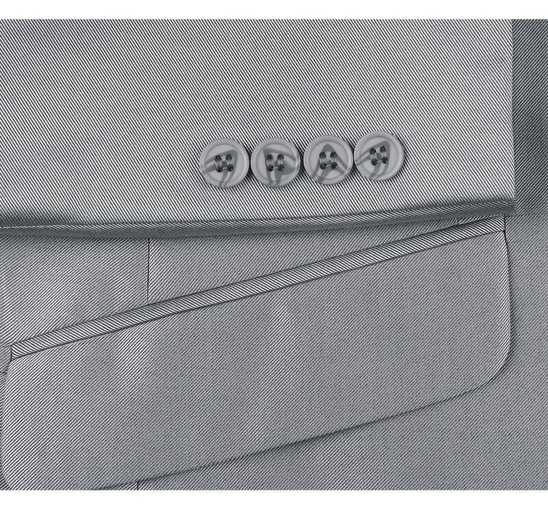 Product Features:. Jacket:. Notch lapel. Single Breasted Two Button Jacket. Chest welt pocket. Flap welt pockets on front. Four buttons on each sleeve. Dual vents. 2 External and 4 Internal Pockets. Pants:. Flat Fronted Trousers. Straight Leg. Front slant pockets; back button-closure welt pockets. Lined to the Knee. Zip fly with hook-and-bar with button closure. Unhemmed
