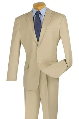 "Tan Poplin Suit Men's Modern Fit - Two Button Style"