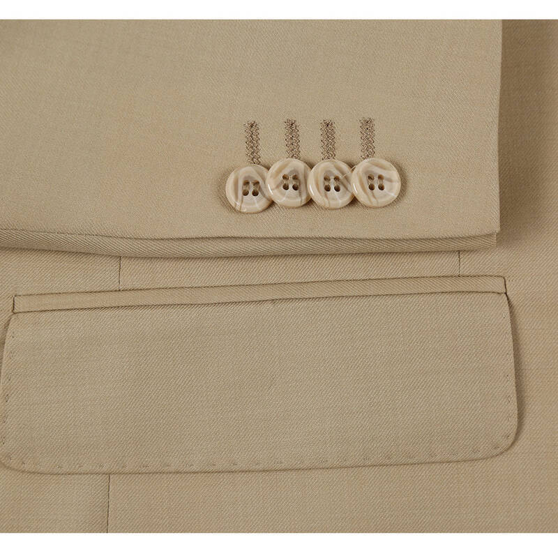 "Tan Slim Fit Wool Suit for Men - Basic Two Button with Optional Vest"