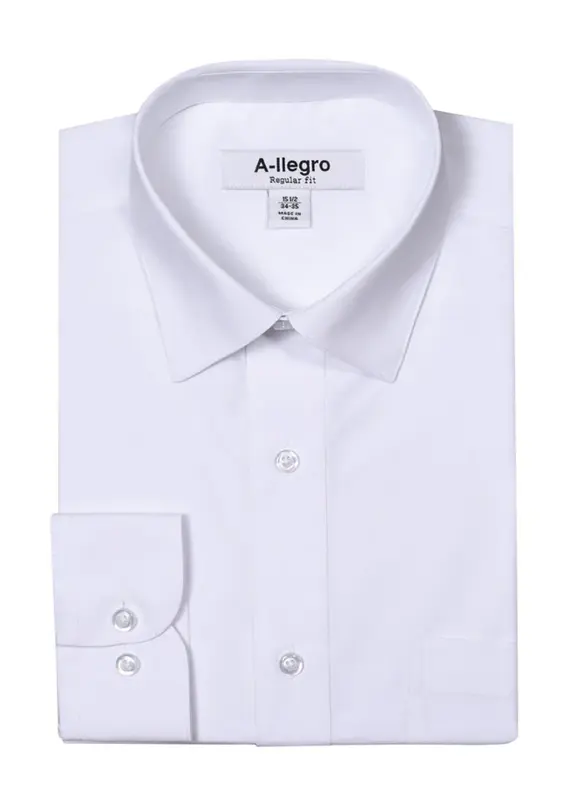 This dress shirt offers a timeless aesthetic with its classic point collar and regular fit cut.. Comfortable Material: Crafted from a cotton blend, this shirt is designed to provide maximum comfort and breathability.. Versatile Design: Perfect for any occasion, this shirt can be worn with or without a suit for a variety of looks.. This classic dress shirt is the perfect addition to any wardrobe. Crafted from a cotton blend, it offers a timeless style with its point collar and regular fit cut, as well as maximum comfort and breathability. Versatile in design, this shirt can be worn with or without a suit for any occasion.